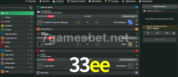 O 33ee oferece uma grande seleção de opções de apostas em e-sports com probabilidades competitivas